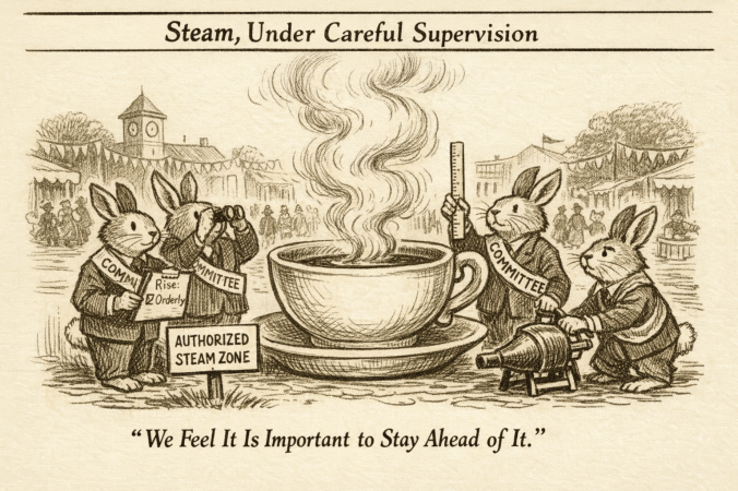 Let it be known across the hedgerows and throughout the orderly districts of Rabbitdom that the banners are raised, the hats secured, the eggs prepared, and the steam of the season set properly to rise.