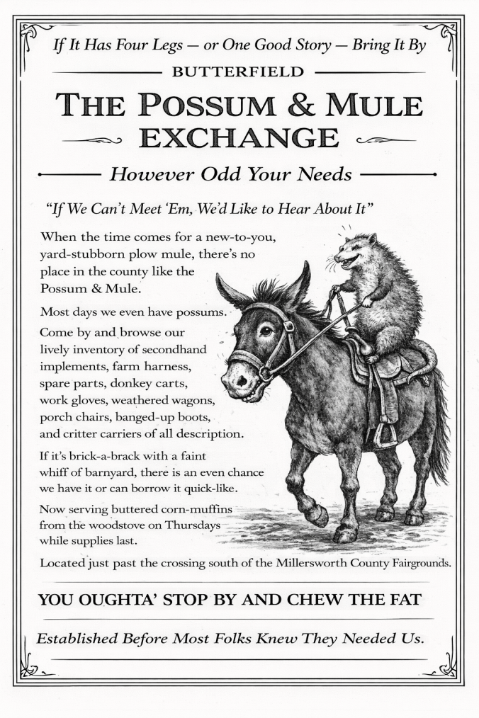 The Hearth & Holler Gazette hails from Honey Hill Country, a small, rural corner of the Missouri Ozarks, as it might have been known in the year 1904 — a time of front porches and wagon roads, oil lamps and handwritten letters, when news traveled at a human pace, where animals and humans interact and live side-by-side, and a Saturday paper was meant to be read slowly, with coffee close at hand. This is not a paper of breaking news or loud headlines. It prefers instead to notice it — the small, human-sized moments that once filled a morning without asking much in return.
