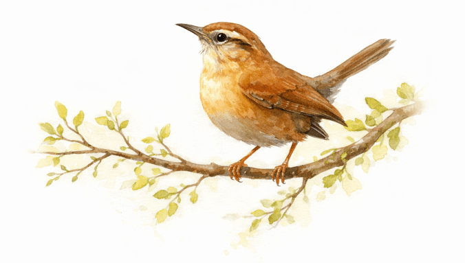 Out on a branch of the Honey Locust tree just beyond the window, a Carolina Wren had taken up position and was delivering his familiar seven-note song — over and over and over again — with the bright confidence of a creature that believes the whole world ought to hear it.